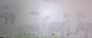 Dopo un lungo percorso dedicato al segno e il disegno, dopo aver imparato a costruire il volto e il corpo siamo arrivati a mettere in campo competenze e creatività attraverso la realizzazione di un fumetto. Questo lavoro è nato anche da un lavoro multidisciplinare dove la storia è stata ideata in italiano e la “messa in scena” in arte.