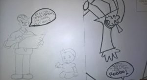 Dopo un lungo percorso dedicato al segno e il disegno, dopo aver imparato a costruire il volto e il corpo siamo arrivati a mettere in campo competenze e creatività attraverso la realizzazione di un fumetto.