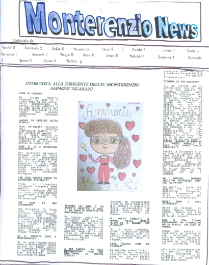 Collaborazione, entusiasmo, impegno, divertimento, passione per la conoscenza, la cultura e l’informazione sono stati gli ingredienti di questo PON. Progetto che ha voluto raccogliere gli interessi dei ragazzi in un giornalino titolato “Monterenzio news”, diventato ben presto manifesto di solidarietà, ambientalismo, spazio utile per riflessioni su personaggi memorabili e allo stesso tempo luogo di risate, giochi ed interpretazioni astrologiche. Gl iesperti grandi e piccoli che l’hanno realizzato sono: Antonella Boldrini, Antonella Ippolito, Costanza Augelli, Nicolò B., Riccardo B., Sofia B., Miriam C., Asia D. C., Nicolò F., Irene F., Viola F., Riccardo F., Samuele F., Maija M., Sara M., Ivan M., Matilde N., Arianna P., Riccardo R., Giona R., Lucas S., Matteo V.