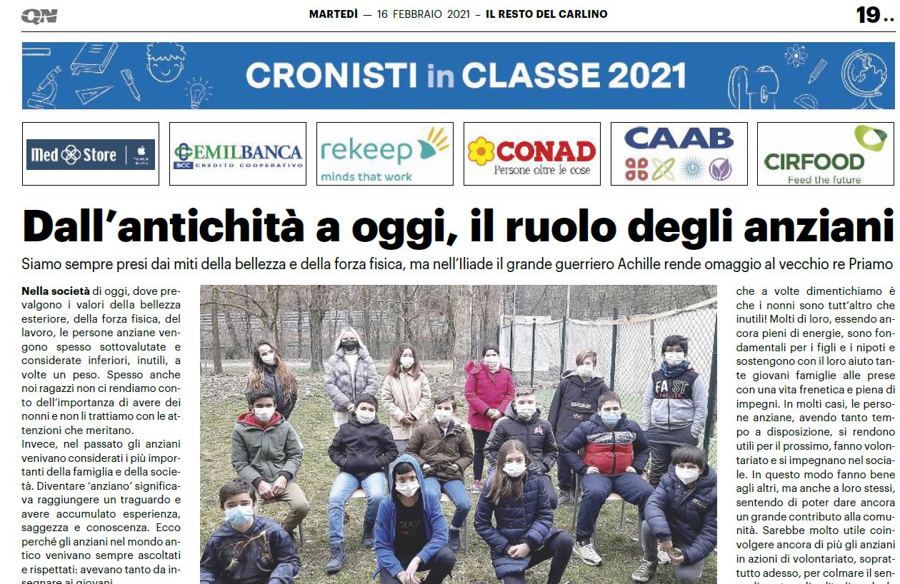 Cronisti di classe, articolo sul Resto del Carlino della classe 1B Scuola Secondaria di Primo Grado, Prof.ssa Tirone.