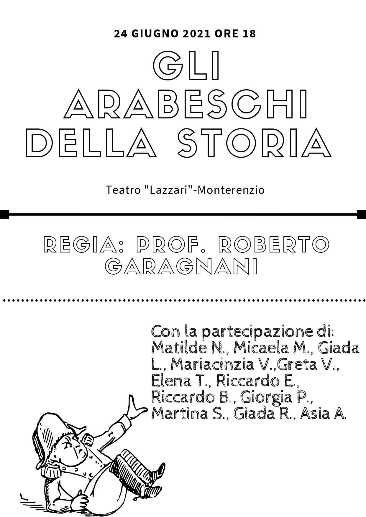 L’Istituto Comprensivo di Monterenzio è lieto di invitarvi allo spettacolo teatrale delle classi seconde e terze “Gli arabeschi della storia” Regia: Prof.